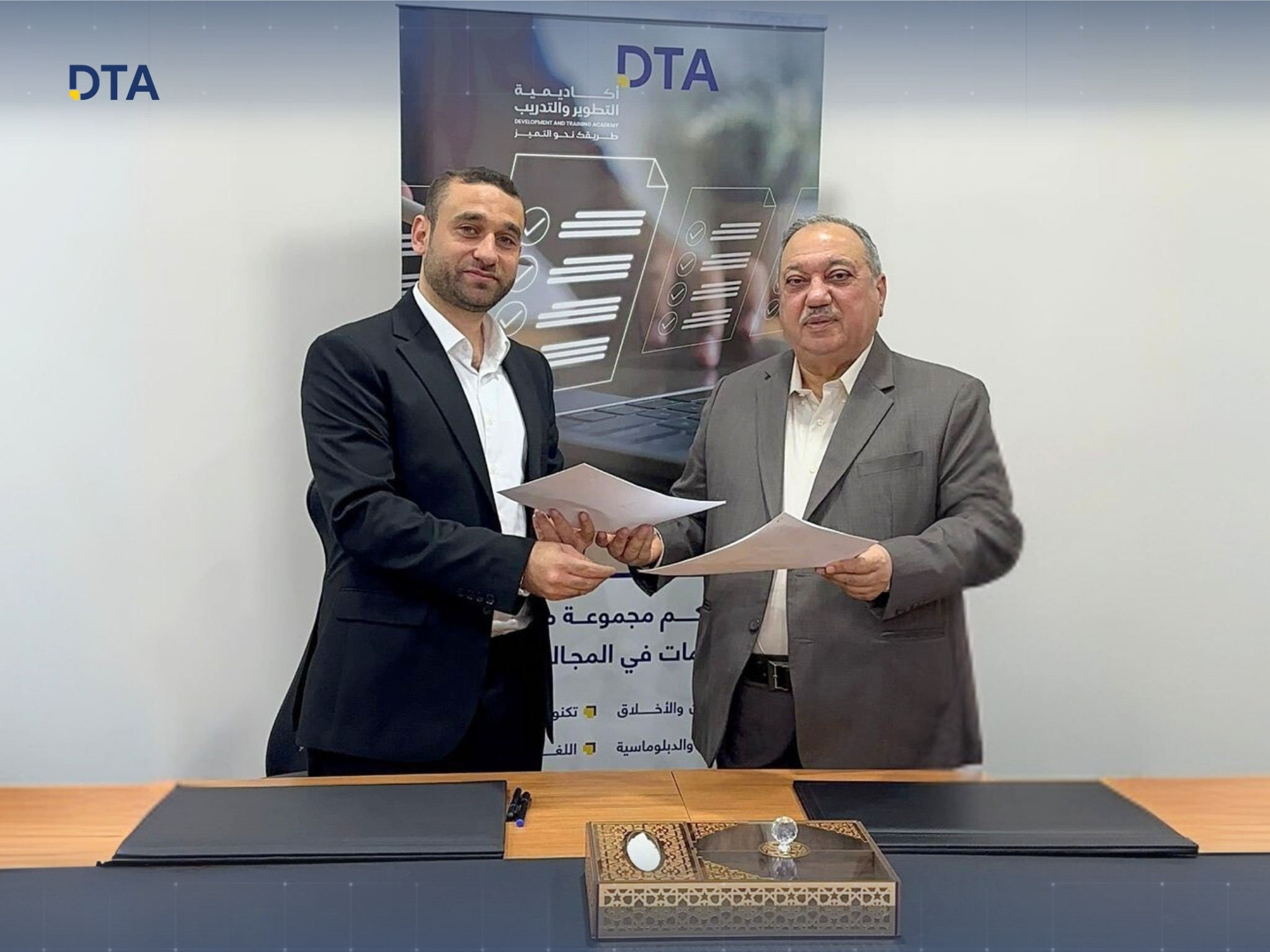 Signing a cooperation agreement between the Development and Training Academy (DTA) and Al-Hussan Education and Training Company.
